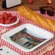 In der Kapuze werden die Teller die Augenbrauen um Ihre picknickische Ansammlung erhöhen. Gut zum Lachen, außer in der Kapuze.
