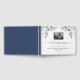 Elegant In liebevoller Erinnerung Foto Beerdigung Gästebuch mit handgeschriebenen Kalligrafiedetails und exquisiten Aquarellblumen-Rahmen auf der oberen Umrahmung Foto. Blume und Blattwerk in Blau, Blau und Grau. Eleganter marineblauer Hintergrund, Fähigkeit, Wirbelsäule und Rückenfarbe zu jedem anderen zu ändern, den Sie mögen.