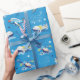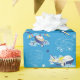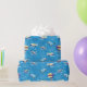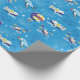 Ein blaues Muster von Luftfahrzeugen wie Hubschraubern, Flugzeugen und Heißluftballons.