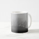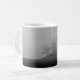 Tasse mit einem schwarz-weißen Foto eines Hügels mit Bäumen in Nebel. Personalisierbar.