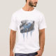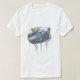 Dieser T - Shirtentwurf ist eine digitale Malerei einer Hand, die zart eine Welle hält, während ein Surfer die Welle reitet.