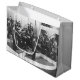 Große, graue, glänzende Geschenktüte mit dem Bild einer Big Band auf der Vorderseite und dem Titel einer der beststen Melodien von Glenn Miller, "In the Mood", auf der Rückseite der Rot-Musik. Auch in matte Oberfläche erhältlich. Siehe dazu Einladung, Umschlag, Vorgeschenkbox, Etikett, Aufkleber mit rett-the-date, individuell geschnittene Vinyl-Aufkleber und Packpapier. Sehen Sie sich die gesamte Patriotic 40s Geschenktüte-Sammlung in den SPEZIELLEN TOUCHS an. | Abschnitt Gastgeschenke.