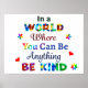Inspiration Zitat von "In einer Welt, in der man alles sein kann, was KIND sein kann", um Menschen mit Autismus-Spektrum-Störung zu verstehen und Freundlichkeit zu ihnen zu fördern.