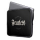 Christlicher Laptop-Ärmel mit hellgrauem Gothic-Skript auf schwarzem Hintergrund. Das ideale Gerät, um Ihren Laptop-Safe behalten. Bibel Verse: In Gott bin ich furchtlos 2 Tim 1:9