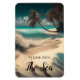 Türkisfarbenes Wasser und Palmen auf einem weißen Sandstrand Magnet Kunst. Zitat: "In Liebe mit dem Meer."