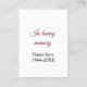 in liebender Gedächtnisname Text Keepake-Gebetskar Visitenkarte
