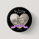 Zeigen Sie Ihre Liebe mit einem Erinnerungsherz-Abzeichen/-knopf. Groß zu tragen, um sich Ihr geliebtes an zu erinnern, personifizieren Sie mit Ihrem eigenen Foto, Namen und Daten. Einfacher schwarzer Hintergrund-Fotorahmen mit einem rosa Band. © Kunst und Entwurf durch Sarah Trett. www.sarahtrett.com für www.mylittleeden.com auf zazzle
