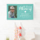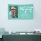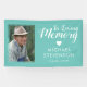 Gedächtlicher Begräbnisbanner mit aquamarinem Hintergrund, der in jede beliebige Farbe verändert werden kann, einem Foto der verloren gegangenen Lieben und einer leicht personalisierbaren "in liebevoller Erinnerung"-Vorlage.