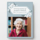 Die schlichte graublaue Gedenktafel ist mit feinen weißen Blume geschmückt, die das Foto schmücken. In liebevoller Erinnerung an den Namen und die Daten Ihres personalisierten Liebsten zwischen den Blumen Kirschblüten. Dieses altmodische hübsche Gedenkschild zeigt ein vollständiges Foto Ihres Verwandten. Ideal für einen Beerdigungsdienst oder eine Feier des Lebens.