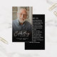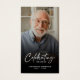 Gedenken Sie mit dieser wunderschön gestalteten personalisierten Gedenkkarte das Leben eines geliebten Menschen. Mit einem herzlichen Foto auf der einen Seite und einem Gebet, Gedicht oder Zitat auf der anderen Seite dient diese Karte als bedeutsame Hommage, die Komfort und Trost in schwierigen Zeiten bringt. Der elegante Skripttext lautet "Celebrating the Life of", gefolgt vom Namen und den Daten des Lebens deines Lieben und schafft so einen personalisierten Sake, der seine Erinnerung ehrt. Dank seiner kompakten Größe eignet es sich hervorragend für die Verteilung bei Beerdigungen, Gedenkveranstaltungen oder Feiern von Lebensereignissen, um Freunden und Familienmitgliedern die Möglichkeit zu geben, ein nahes Memento behalten. Bieten Sie Worte des Komforts und der Erinnerung und machen Sie diese Karte eine schöne Art, das Erbe Ihres Lieben zu feiern. Ob in einer Brieftasche behalten oder auf der Zuhause gezeigt, diese Gebetskarte ist eine dauerhafte Hommage an diejenigen, die vergangen sind, aber nie vergessen werden.