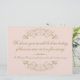 Dekorative Wirbel und Schnörkel umrahmen dieses Vintage inspirierte Hochzeitszeichen / -karte. Rosa Blush und antikes Gold.