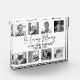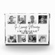In liebevollem Gedächtnis Trauung Gedenkstein mit einer 8 Foto Collage in Schwarz-Weiß (eine farbige Option ist im Shop erhältlich). Das Beispiel lautet "von denen, die heute und immer in unserem Herzen immer sind". Weißes, einfaches Kalligrafiedesign für den Empfang oder die Zeremonie.