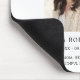 Personalisieren Sie dieses einfache elegante Beerdigungsmauspad mit dem Namen und den Daten Ihres Liebsten. Moderne, elegante Schrift-Typografie auf einem sauberen, weißen Hintergrund. Perfekte Ergänzung zu Ihrer Beerdigungsdenkmäler-Gedenkveranstaltung und einem wahren Sake. Foto und Text lassen sich leicht anpassen. Unser aufrichtiges Beileid für Ihren Verlust.