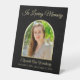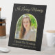 Dieses hübsche Schild auf dem Sockel macht eine schöne Ergänzung zu einer Beerdigung oder Feier des Lebenstisches. Das Design zeigt Ihr Foto auf einem schwarzen Hintergrund in einem Bogen mit goldenem Rahmen. Sie können das Design mit Datum und Namen anpassen. Copyright Beileid Vielen Dank von Kathy Henis