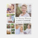Elegante Gedenktüte, die das Leben und die Zeiten eines verstorbenen Angehörigen feiert, der "In Loving Memory" in einem stilvollen Drehbuch, eine neun Foto Collage zum Gedenken an seine Familie, Haustiere, Freunde, Errungenschaften, Reisen und Freuden, ihren Namen und ihre Geburtsdaten und Todesdaten präsentiert.