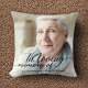 Modernes Foto-Kissen mit viel Liebe. Design mit Single Foto, in liebevollen Memory-Skript und Namen auf der Vorderseite. Personalisieren Sie Ihre Nachricht, Ihr Gedicht, Ihr Zitat usw. auf der Rückseite. Perfektes Denkmal, Hommage an einen geliebten, der verstorben ist.