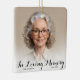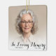 Ein personalisiertes Weihnachtsbaumdenkmal auf der Keramik zeigt "In Loving Memory", den Namen Ihres Liebsten und die Jahre der Geburt und des Todes über ihrem Foto.