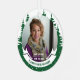 Moderne Foto-Ornamente mit viel Liebe. Design mit Single Foto, Kiefernbäumen Hintergrund, Name und Daten auf der Vorderseite. Personalisieren Sie Ihre Nachricht, Ihr Gedicht, Ihr Zitat usw. auf der Rückseite. Perfektes Denkmal, Hommage an einen geliebten, der verstorben ist.