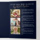 Dieses raffinierte Begräbnisprogramm zeigt eine moderne und herzliche Ästhetik mit tiefblauem Hintergrund und eleganten goldenen Schriftzeichen-Akzenten. Das Layout verbindet sorgfältig Serif- und handgeschriebene Skript-Schriftart, um einen respektvollen und warmen Ton zu schaffen, der ideal ist, um die Erinnerung eines geliebten Menschen zu ehren. Vollfarbige Collagen bieten Platz für persönliche Schnappschüsse, während benutzerdefinierte Abschnitte für einen Nachruf, eine Dienstordnung, ein Gedicht oder Zitat, Bestätigungen oder einen anderen Text eine sinnvolle Möglichkeit bieten, ein Leben gut gelebt zu feiern. Das reichhaltige, klassische Farbschema und die sauberen Designelemente machen dieses Template zu einem schönen und zeitlosen Sake für Familie und Freunde, die das Denkmal besuchen.
