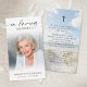 This personalized prayer card combines a serene beach scene with a softly placed cross and an elegant photo layout to honor a life remembered with faith and love. The peaceful shoreline imagery offers a sense of calm and reflection, while the editable Christian prayer and cross symbol provide spiritual comfort during times of loss. Thoughtfully designed for funeral services, memorials or Celebration of Life gatherings, these custom prayer cards serve as a meaningful keepsake that family and friends can treasure as a lasting reminder of love, remembrance and hope. Its small and portable size of 3.5x2" (wallet-sized) makes it convenient to carry as a reminder of their life and spirit. Personalization makes each card unique.