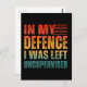 IN MEINER VERTEIDIGUNG WURDE MIR UNÜBERWACHT VERLA POSTKARTE