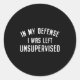 In My Defense I Was Left Unattended Funny Runder Aufkleber