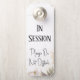 Dieses professionell gestaltete "In Session"-Türschild ist eine subtile, aber effektive Art, Privatsphäre und Vertraulichkeit innerhalb eines Therapeuten anzugeben. Das elegante Design und die klare Botschaft vermitteln ein Gefühl von Respekt und Professionalität und sorgen dafür, dass sich die Kunden während ihrer Sitzungen sicher fühlen. Dieses Zeichen ist eine wertvolle Ergänzung zu jedem Beratungs- oder Therapiebereich.