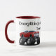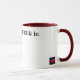 Maroon und White Coffee Tasse mit Riesenviertel und Zitat: In Texas ist alles größer...