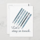 Behalt in Touch mit dieser illustrierten Postkarte Vintager, blauer Füllfederhalter. Die personalisierte Vorlage besagt: "Lasst uns in der Touch bleibe werden."