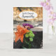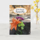 Diese hübsche Beileid-Karte zeigt einen Blumenstrauß aus Orange, Gelb und Lila neben einem Eichenbäumchen im Wald. Die herzlichen Worte in dieser Karte sagen: "Könnt ihr Trost finden, wenn ihr wisst, dass ihr in den Gedanken und Herzen anderer seid, während dieser Zeit der Trauer."