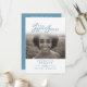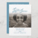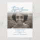 Weiße und blaue Beerdigungsprogrammordnung zweiseitig einfach in unseren Herzen für immer Zeremonie-Programme. Ersetzen Sie einfach den Mustertext und den Foto-Inhaber durch Ihre eigenen Foto- und Beerdigungsinformationen. Original Typografie und in unseren Herzen für immer Grafik Design von Sarah Trett für www.mylittleeden.com (Foto-Guilherme Stecanella auf Unsplash Model Foto ist nur ein Platzhalter-Bild für Sie zu ersetzen).