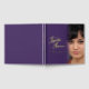 Ein viereckiges Grabdenkmal-Tribut-Buch. Einfach in unseren Herzen für immer typografisches Herz-Drehbuch Logo-Design in Goldfolie auf lila oder die Folie Ihrer Wahl. Personalisieren Sie mit Ihren eigenen Lieben Foto, Namen und Daten. Originelles Design von www.mylittleeden.com