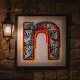 The letter n done in Inca style with Inca art inside the letter. This design looks really effective on these Poster