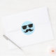 Fun Aufkleber mit einem inkognito blauen Gesicht mit Sonnenbrille und Schnurrbart als Verkleidung. Kann zum Beispiel als Umschlag Aufkleber für ÜberraschungsParty Einladungen verwendet werden.
