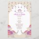 Indian Elegance Dieses bezaubernde Hochzeitsprogramm verbindet kulturelle Motive mit einer modernen Ästhetik und schafft ein traditionelles und zeitgenössisches Design. Die Einladung ist in einem sanften, beigen Hintergrund mit zarten Blumenmustern gehalten und symbolisiert Eleganz und Harmonie. Im Mittelpunkt stehen die lebendigen, dekorativen Elefanten, die eine Touch des Kulturerbes und der Festlichkeit in lila und orangefarbenen Tönen hinzufügen. Der verzierte Bogen oben und die blühenden Blumengärten schaffen eine warme und einladende Atmosphäre. Der Script-Schriftart für die Namen verleiht Eleganz, während der klassische Serif-Schriftart eine einfache Lesbarkeit der Details ermöglicht. Ideal für eine Kultur oder Hochzeit in Urlaubsort, erschließt diese Einladung das Wesen von Liebe und Feier. F007