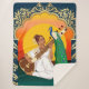 An beautiful blanket of an Indian girl dressed in white playing the sitar (Indian guitar) with an peacock resting on it. The Hindu goded of the Arts.