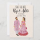 Ein wunderschönes und niedlich rosa minimalistisches Hochzeitsdesign mit einem illustrierten indischen Ehepaar, das eine heiß rosa Kleidung trägt und sein Hochzeitsdatum verkündet, beinhaltet die Personalisierung .