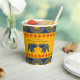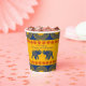 Diese Papiertassen bieten einen modernen Einschlag auf traditionelle indische Hochzeitszeremonien und Empfänge mit ihrer kühnen Farbpalette aus goldgelb, rot und königsblau. Die Party-Vorräte sind durch ein geometrisches Motiv hervorgehoben und zeigen Abbildungen von Elefanten in königsblau und sind bereit, mit Ihrem eigenen Text personalisiert zu werden.