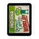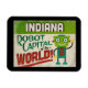 Ein charmanter Reiseteilmagnet aus Indiana mit einem lustigen und freundlichen Roboter, zusammen mit lustigen Retro-Kühlschrank-Texten, in denen steht: "See you in Indiana"