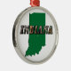 Indiana Staat Map Green Kontur & Foto Text Silbernes Ornament