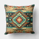 Indianeramerikaner Südwest Navajo Kissen mit symmetrischem Stammes-Kunstmuster mit türkisfarbenen, orangefarbenen und hellbraunen Farben