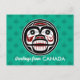 Schicken Sie Ihrer Familie diese Postkarte mit einem schönen Haida-Wachskull aus British Columbia, Kanada. Der Hintergrund ist grün. Man kann mit Haida Kunst an der Nordwestküste nicht falsch liegen, sie ist seit Jahrzehnten beliebt. Diese Designs der ersten Nationen sind ideal für Bekleidung und sehen immer gut aus. Dies ist mein erster Versuch, ein originelles Design zu schaffen. Der Schädel ist ein Subjekt, das oft in der Kunst dargestellt wird. Ich entwarf diesen Form-Linien-Schädel im Frontal mit einem Auge, das eine Träne hat. Aufgrund meiner Familie in British Columbia, zum Beispiel Vancouver BC, war Haida Form Line Kunst Teil meines Lebens. Die Nordwestküste des Pazifik ist ein wunderschöner Ort, wo ich ein paar glückliche Ferien verbrachte und vor ein paar Jahren beschloss ich, etwas von seiner heimischen Kunst zu lernen. Form-line ist eine indigene Kunst, die von den Menschen der ersten Nation an der Nordwestküste Nordamerikas gemacht wurde. Der Begriff Form-Linie wird von Bill Holm erfunden. Wir verwenden das Wort seit 1965, aber die Kunst ist viele hundert Jahre alt. Die Idee ist, eine fließende, kontinuierliche Linie mit steigender und abnehmender Dicke zu schaffen. Wir bekommen Negativräume mit einer dominanten schwarzen Kontur. Die negativen Leerzeichen werden mit Formen oder Elementen vom Typ der Formulareinie gefüllt. Die Hauptformen sind ovoid's, U forms und S Formulare. Mit diesen Formen stellt der Künstler eine komplette Form-Linie zusammen.