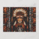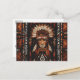 In den USA zeigen Postkarten die lebendige und symbolische Schönheit der indigenen Kultur. Im Mittelpunkt der Postkarte steht ein Detail eines traditionellen amerikanischen Kopfes, der oft mit einer Reihe von Federn, Perlen und komplizierten Mustern in leuchtenden Farben geschmückt ist. Diese von amerikanischen Indianern und Kriegern geschworenen Headressen repräsentieren Ehre, Tapferkeit und spirituelle Bedeutung. Der Kunststil betont typischerweise natürliche Elemente und spirituelle Verbindungen, mit reichen Erdtönen oder auffälligen Kontrasten. Set vor einem minimalistischen Hintergrund, erinnert die Postkarte an einen tiefen Respekt vor dem Erbe und der Handwerkskunst der Indianer. Sie dient als ein faszinierendes Stück ethnischer Kunst, das die kulturelle Bedeutung der amerikanischen Traditionen der Indianer erzieht und sie auch zelebriert.