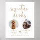 Dieses Signatur-Getränkedokument verfügt über zwei Foto-Slots, einen edlen, handgeschriebenen Schriftart und ein modernes minimalistisches Design. Ändern Sie ganz einfach die Schriftart- und Hintergrundfarbe, um sie Ihrem Event anzupassen. Dieses Schild eignet sich hervorragend, um Braut und Bräutigam, Kinder oder Ihre Lieblingstiere hinzuzufügen.