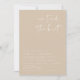 Dieses Empfang mit edlem handgeschriebenem Schriftart und modernem, minimalistischem Design in beige-weißer Farbkombination. Bearbeiten Sie *most* und alle Farben, um Ihren Bedürfnissen zu entsprechen, und fügen Sie ein Foto auf der Rückseite für eine persönliche Touch hinzu.