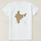 Auf der Front dieses Shirts begleitet ein editable Titel und ein Slogan die indische Flagge mit seinem blauen Kreismotiv auf Weiß zwischen den orange und grünen Bändern. Die Rückseite zeigt eine ausführliche Karte von Indien an.