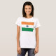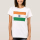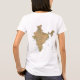 Die Vorderseite dieses T - Shirt zeigt mutig die indische Fahne mit ihrem unverwechselbaren blauen kreisförmigen Motiv in einem weißen Band mit einem orangefarbenen Band über und einem grünen Band unten. Hinter diesem Bild befindet sich eine attraktive Karte Indiens.