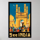 Ein traditioneller Basar steht im Mittelpunkt dieser Vintagen Werbung für Reisende in Indien. Testunterlagen: Siehe Indien.