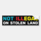 History tells the truth—"American" land was taken. “Not Illegal on Stolen Land” is stacked in white, red, yellow and turquoise text over a black background (indigenous flag colors), making a sharp political statement. The design honors Indigenous resistance, immigrant rights, and the call to decolonize not just land, but mindsets.