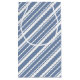 Eine schicke kleine Geschenktasche mit einem Indigo Blau und Weiß gestreiftem Muster. Dieses Muster ist Teil der Posh- und Painterly 'Indigo'-Kollektion und kann leicht an jedes Geschenktaschen angepasst werden.